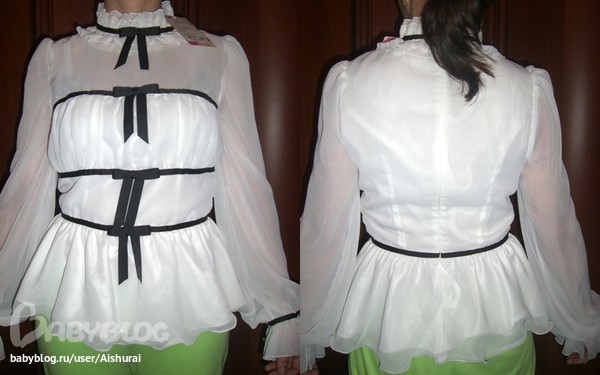 Пристрою белую блузку с ТАО, маркировка XL - 46 рос., села отлично, четко по фигуре. Заказывала для работы в офисе, но блузка в жизни смотрится даже более нарядно, чем на фото. Стоимость: 1300 руб. Более подробно здесь