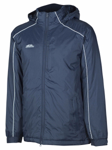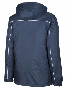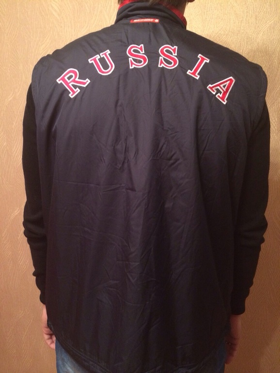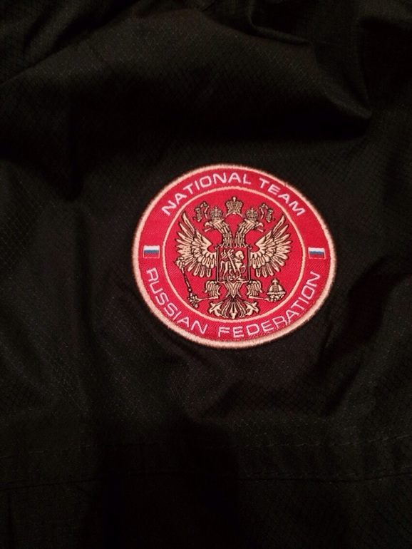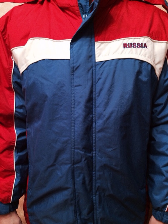 Куртка пуховая полуприлегающего силуэта с капюшоном. Капюшон, регулируемый по высоте на подкладке из искусственного меха с отстегивающейся опушкой из натурального меха. Центральная застежка на тесьму - «молнию» и ветрозащитную планку. На полочке по бокам - два кармана с клапанами на кнопках и два прорезных кармана, обработанные тесьмой "молнией". На груди расположен бесшовный карман с тесьмой "молнией". Рукава двухшовные втачные с внутренними манжетами из трикотажа. Низ рукавов регулируется по ширине патами. На рукаве выполнен дополнительный накладной карман на "молнии". На спинке в боковых швах обработаны шлицы с застежкой на кнопки. На подкладке обработана кулиска на талии для регулировки ширины и два внутренних кармана: один карман с застежкой на "молнию", второй карман - из сетки.Состав:ткань верха-100% нейлон, подкладка- 100% полиэстер, наполнитель- 85%гусиный пух, 15% перо.Нанесения: светоотражающий принт логотипа, съемный шеврон "герб ", жаккардовый лейбл "глобус", принт "RUSSIA".