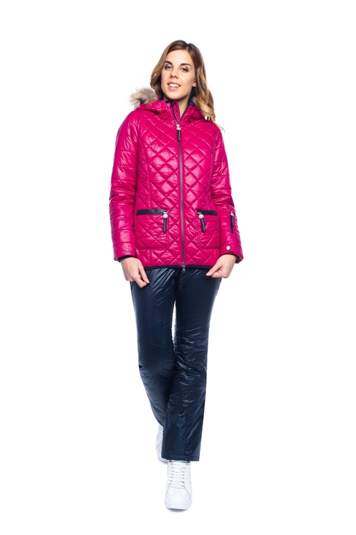 №7. Костюм утепленный состоит из куртки и брюк. Куртка полуприлегающего силуэта с отстегивающимся капюшоном. Капюшон с отстегивающейся опушкой из натурального меха. Центральная застежка на тесьму - «молнию». На полочках обработаны боковые карманы с тесьмой-«молнией». Рукава втачные. В левом рукаве обработан карман для ски-пасса, под проймами - вентиляционные отверстия с молниями. На подкладке обработана юбка для защиты от попадания снега, стянутая по краю плоской резиновой тесьмой с нескользящей поверхностью, ветрозащитная юбка плотно обхватывает талию. Препятствует проникновению ветра и снега внутрь одежды. На подкладке обработаны два внутренних кармана один карман с застежкой на молнии, а второй карман из сетки. Низ куртки регулируется с помощью эластичного шнура и фиксаторов. Брюки прямого силуэта на поясе c отстегивающейся спинкой. Застежка центральная на тесьму-«молнию». На передних половинках обработаны боковые карманы с тесьмой - «молнией». В боковых швах по низу обработаны разрезы с тесьмой - «молнией». В нижней части брюк, с внутренней стороны, для защиты от снега обработаны снегозащитные манжеты. Снегозащитные манжеты стянуты плоской резиновой тесьмой с нескользящей поверхностью, плотно обхватывает ногу в районе щиколотки. В брюках предусмотрена защита брюк от истирания - по низу брюк и на пересечение шаговых швов. Состав:ткань верха-100%нейлон, подкладка- 100% полиэстер, утеплитель - 100% полиэстер. Нанесения:металлический значек "F"