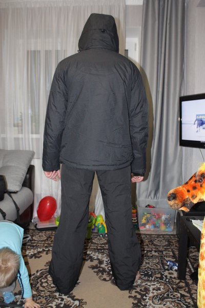от подмышки до подмышки - 61, длина куртки - 73, рукав мах - 55, рукав от плеча-66, штаны шаг-81, талия максимум - 47 (регулируется липучками), ОБ где-то 57-58, если я в том месте нашла бедра :)).