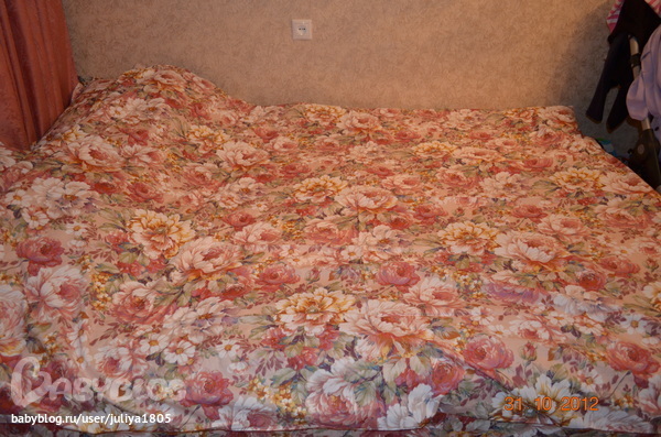Это я его сразу на кровать примерила)) Пододеяльник двусторонний, т.е. рисунок одинаковый с обеих сторон