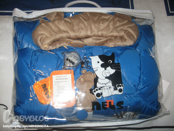 Цвет синий. Наполнитель: 80%-пух, 20%-перо. Очень теплый, красивый, вашему малышу будет комфортно в нем! Нам не подошел размер.