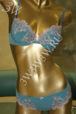 Бюстгальтер Push-up, с формованной чашкой, с гелем. Чашки с вертикальным швом. Выполнен из эластичной сетки, украшенной изящной ажурной вышивкой. Боковые детали выполнены из элатичного полотна и имеют упругие пластины. Отделка - бантик с бусинами. Отстегивающиеся бретели.