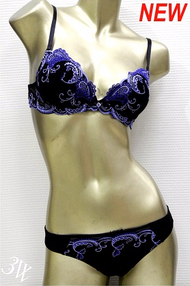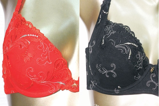 Бюстгальтер с мягкой чашкой, с тройным диагональным членением. Выполнен из сетки с эффектной вышивкой, контрастной основному цвету бюстгальтера и эластичного полотна. Боковые упругие пластины. Отделка - декоративный бантик.