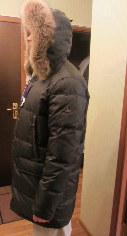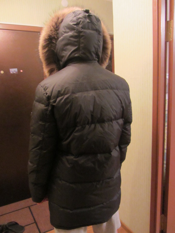 Извините, но пух пока убран с другими зимними вещами. Мне проблематично сейчас достать. Но он соответствует полному 52 размеру. Муж у меня ростом 176 см. По фото видно длину.