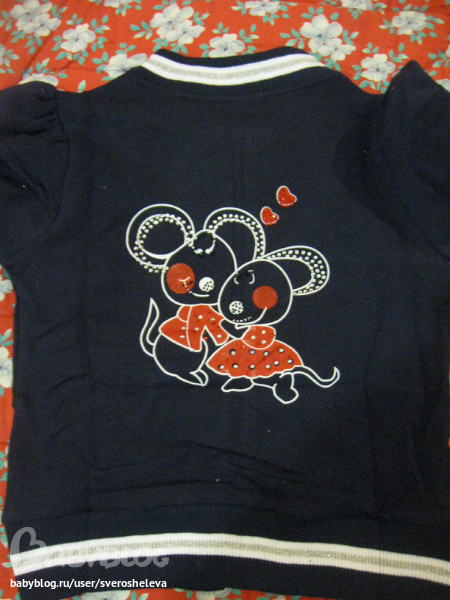 кофта с мышкой классная синяя, тоже такую ждем с чутL только там костюмом