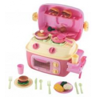 Если открыть духовку кухни Hello Kitty, то загорится свет. Когда Ваш малыш будет готовить еду, будет издаваться звук кипения и шипения. Но и это еще не все. Есть имитация звука воды, которая якобы течет в раковине.В наборе 17аксессуаров.