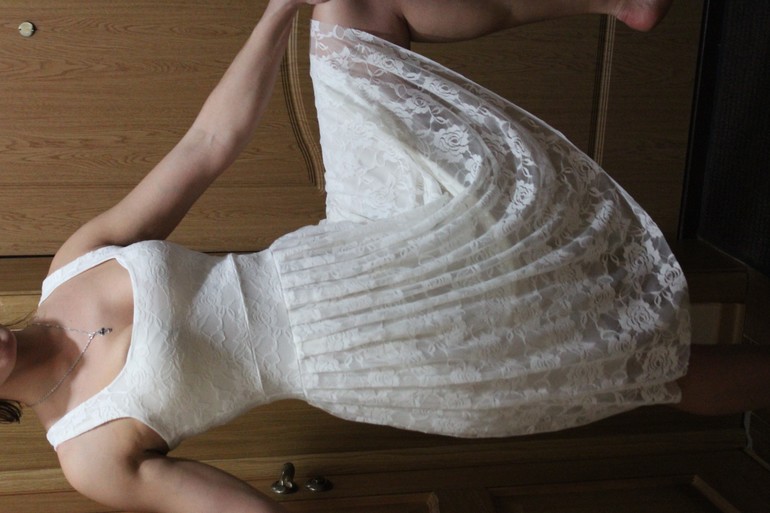 Платье хорошее, сшито очень аккуратно, очень хороший материал низа, верх - молочный (не белый) цвет, материал не знаю какой, тянушийся!!!