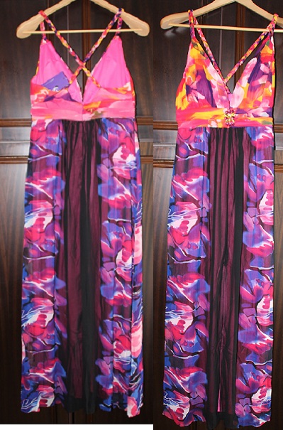 Попробую правильно сформулировать. Ну ок, на сайте на этом платье сзади тоже есть эта черная полоса, но впереди-то нет ее и там и желтый с розовым присутствует. Лиф на фото преимущественно розовый, у меня же желтые и сиреневые пятна. Я хотела розово-сиреневое платье , а получила мрачноватое, одинаковое спереди и сзади. На фото, поверьте, все выглядит очень даже ярко и неплохо, но в реале цвета более приглушенные и мрачные.Попробую правильно сформулировать. Ну ок, на сайте на этом платье сзади тоже есть эта черная полоса, но впереди-то нет ее и там и желтый с розовым присутствует. Лиф на фото преимущественно розовый, у меня же желтые и сиреневые пятна. Я хотела розово-сиреневое платье , а получила мрачноватое, одинаковое спереди и сзади. На фото, поверьте, все выглядит очень даже ярко и неплохо, но в реале цвета более приглушенные и мрачные.
