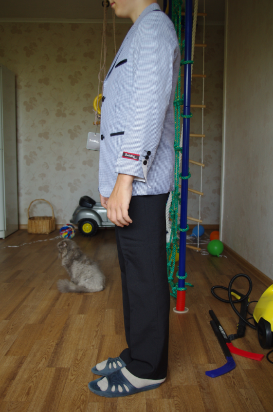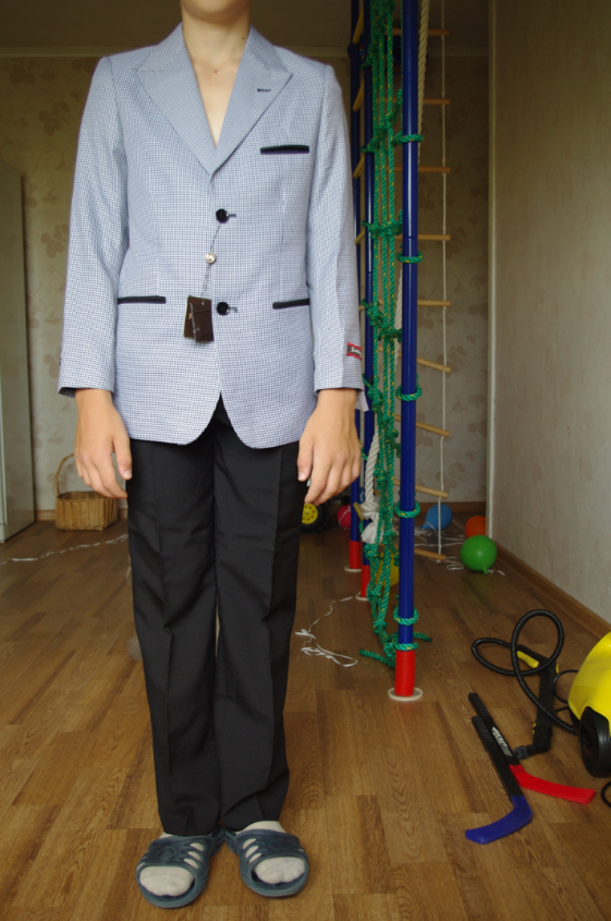 Красивый и качественно пошитый , к сожалению оказался мал для подростка нормального телосложения , ростом примерно 160 см - брюки в самый раз, рукава коротки см на 5-6 (