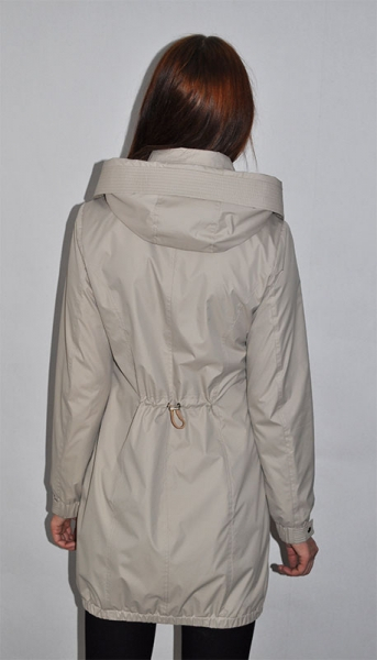 Ветровка из смесовой ткани на подкладе с капюшоном. Капюшон съемный. Длина по спинке 67 см.