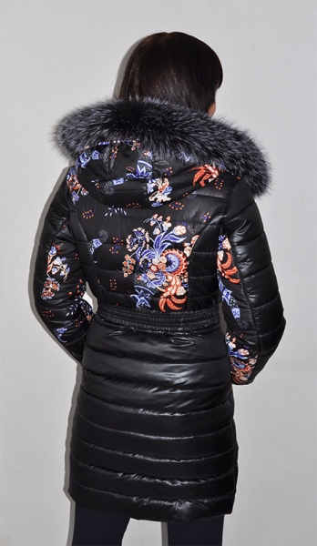 Пуховик с капюшоном. Отделка мех чернобурки. Капюшон и мех съемный. Длина изделия по спинке 98см.