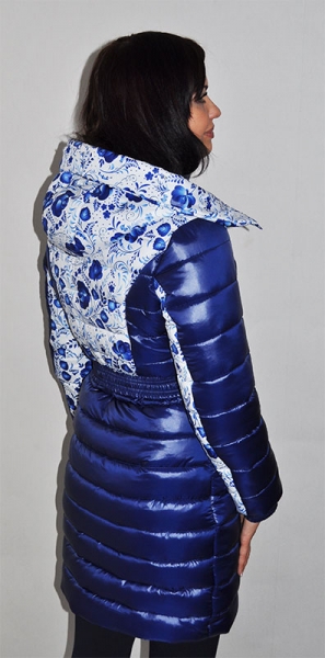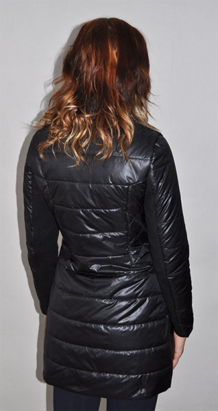 Пальто из плащевой ткани. Утеплитель синтепон 120. Трикотажные вставки на рукавах и воротнике. Длина по спинке 86см.