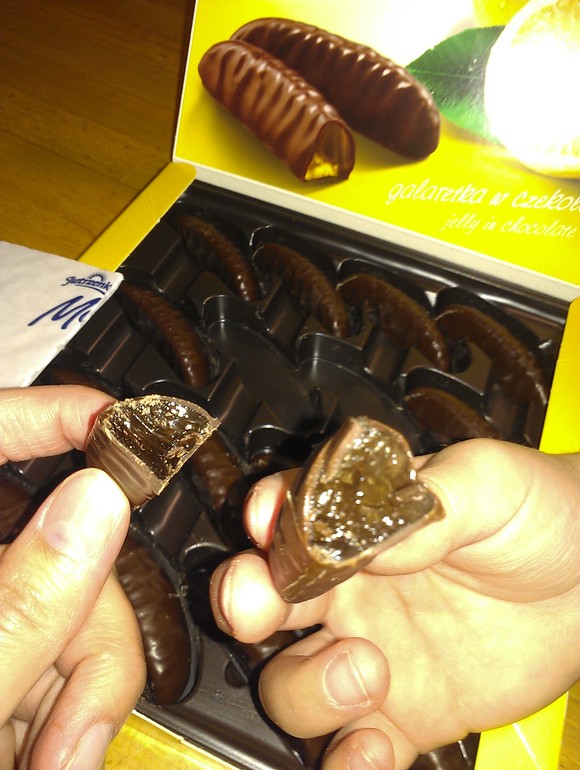 Все доехало в целости, все свежее и главное не избитое.Мы брали много, большую часть на подарки. Эти внутри крем с мелкой воздушной кукурузкой, я их сьела за милую душу.