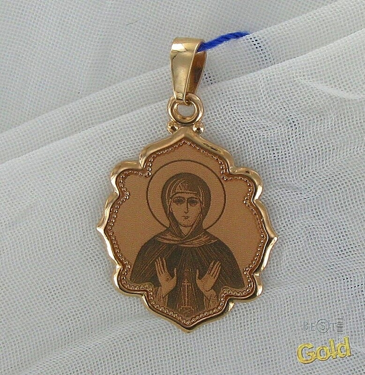 8. Золотая нательная икона св. Лариса, вес 0,96гр, стоимость 2140 руб.
