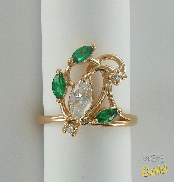 12. Комплект серьги и кольцо (серебро с золочением, фианиты). Размер кольца - 17 мм.
