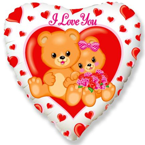 Шар (18''/46 см) Сердце, Влюбленные мишки - 49,37 руб. (9 шт.)