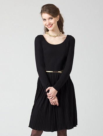 Описание: Выполнено из тонкого трикотажа цвета кофе с молоком и эффектом меланж, верхняя часть двуслойная для формоустойчивости. Юбка с эффектом мелкого ассиметричного плиссе, низ обработан микрооверлоком.