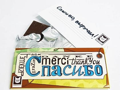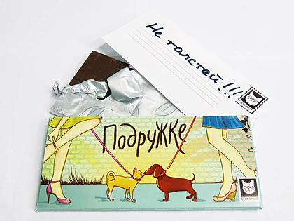 "Фишка" серии CHOKOPOST - внутри есть форма для Вашего послания. Иногда, то что хочется сказать - лучше написать! А еще в шоколад с посланием можно вложить денежные купюры или подарочный сертификат!