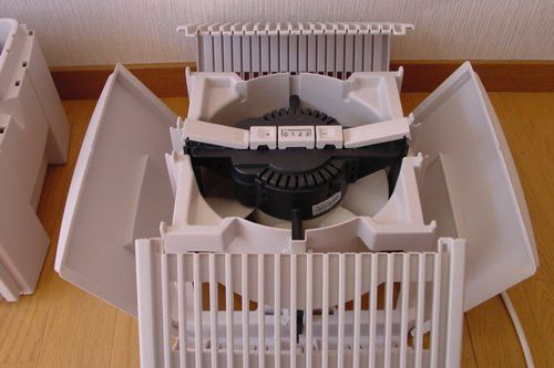 установлено 2 двигателя; один приводит в движение вентилятор, другой - пластинчатый барабан. Из-за наличия 2х двигательной системы увеличивается уровень шума!