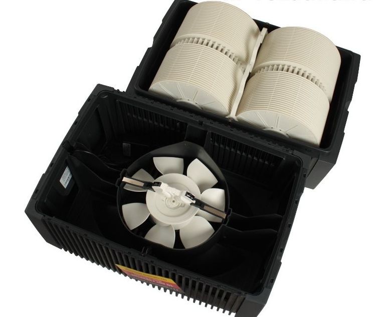 1 двигатель, который приводит в движение всю систему в целом! Запатентован приводной механизм, который вращает пластинчатый барабан при вращении вентилятора. Благодаря наличию одного двигателя - уровень шума при работе аппарата минимальный и как следствие - низкое электропотребление!!!