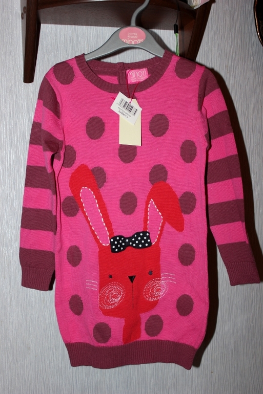 RABBIT 4 Вязаное платье-свитер, рукава в полоску, рисунок/бантик, 100% хлопок
