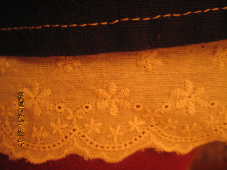 Расклешенная юбка, декорированная шитьем и пояском из ткани