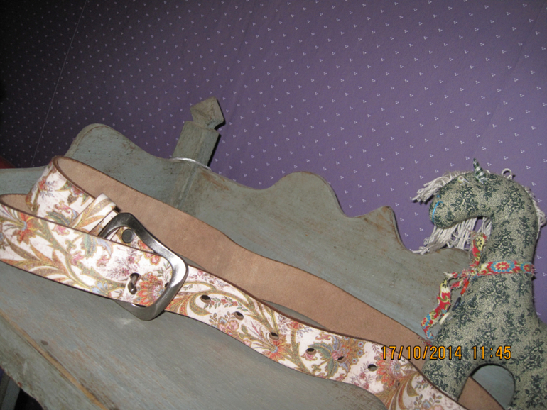 Кожаный ремень с энтическим принтом (рисунок цветы на светлом фоне). Цена 693+10%+доставка