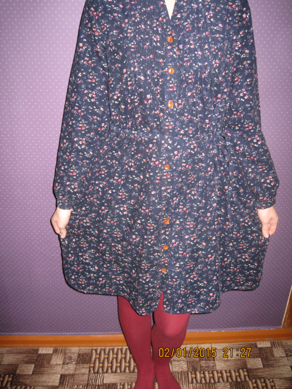 Вельветовое платье с застежкой на пуговицах и воротником-стойка
