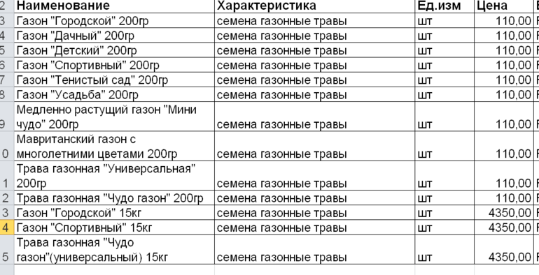 | Газон "Городской" 200гр | шт | 110,00 | RUB |