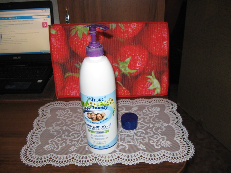 А из серии Happy Family купила гель для душа. Целый литр за 111 рублей! Запах обалденный, очень приятный! Вставила дозатор и просто супер!!!! Кстати говоря, дозаторы не выкидываю, удобная вещь )) вот и сейчас пригодился )