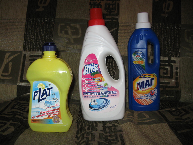 Ну и бытовая химия. Попробовала средство от ржавчины, почти избавилась от 20-и летнего пятна в ванне! Пятновыводитель и средство для стирки пока не попробовала, но обязательно расскажу!