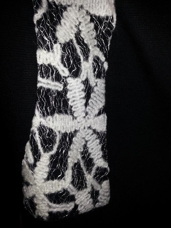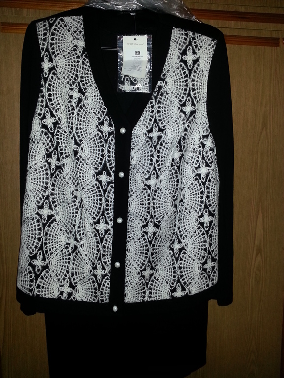 еще один костюм с таким же декоративным украшением вязаным![]()