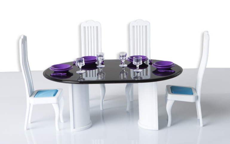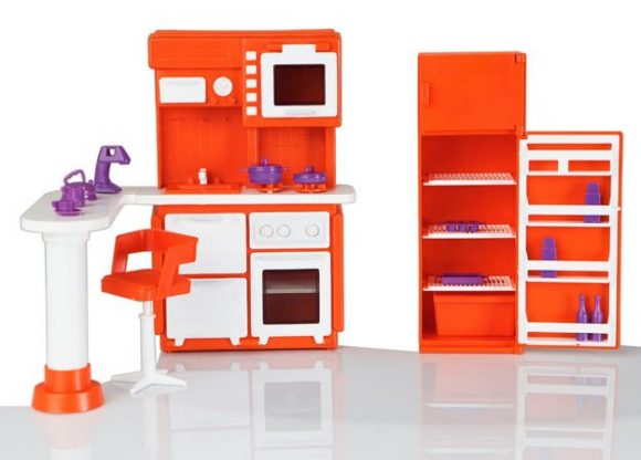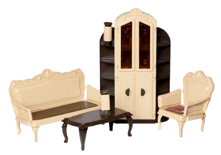 Дома и мебель выполнены из пластмассы.