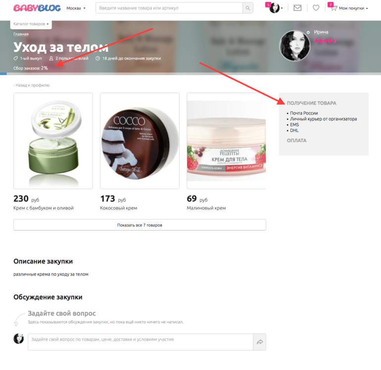 ПЛАТФОРМА СПВот так будет видно на сколько % собрана закупка и как можно получить свой заказ и оплатить!