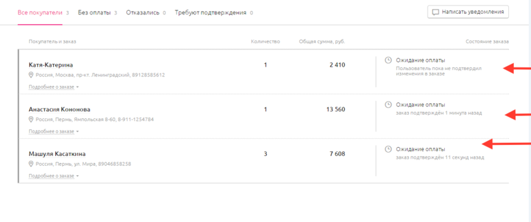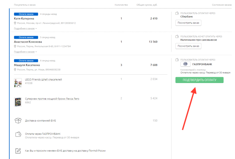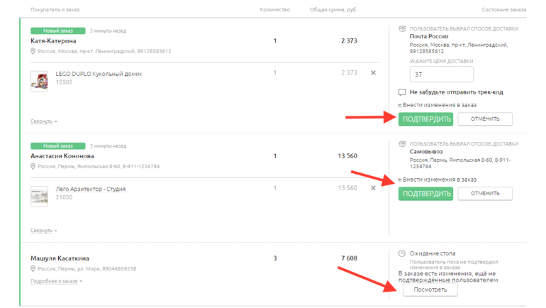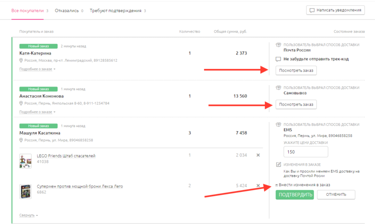 Просматриваем заказы и подтверждаем их.