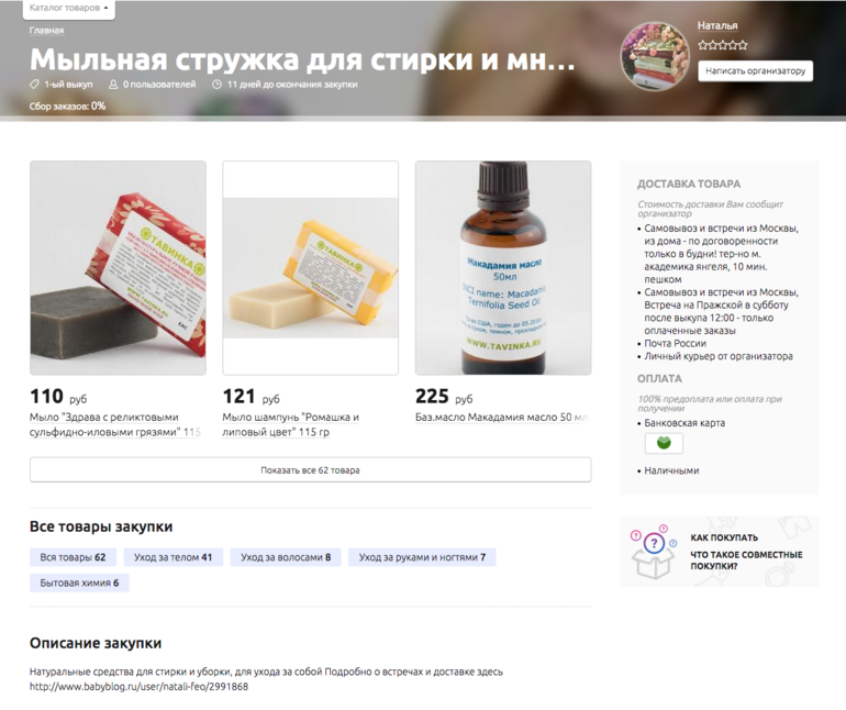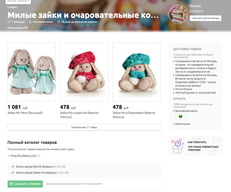 если можно пожелания высказывать:)1. ОЧЕНЬ не хватает разделения товаров в закупке по темам.Например в закупке косметики сплошняком все идёт не систематезировано.Покупателю будет чертовски сложно подобрать себе набор средств.Вот бы дать возможность каталог делить внутри закупки: - очищение- маски- кремы.......2. Слишком мало позиций появляется на экране. Вот бы чтобы была возможность тыкнуть на "показатьь все"