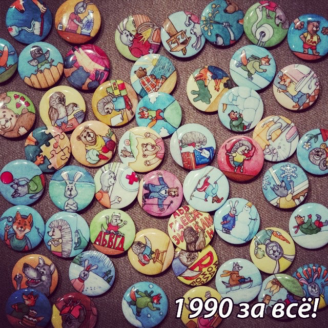 10 значков общей тематики для детей чуть постарше. Розничная цена: 380 рублей.