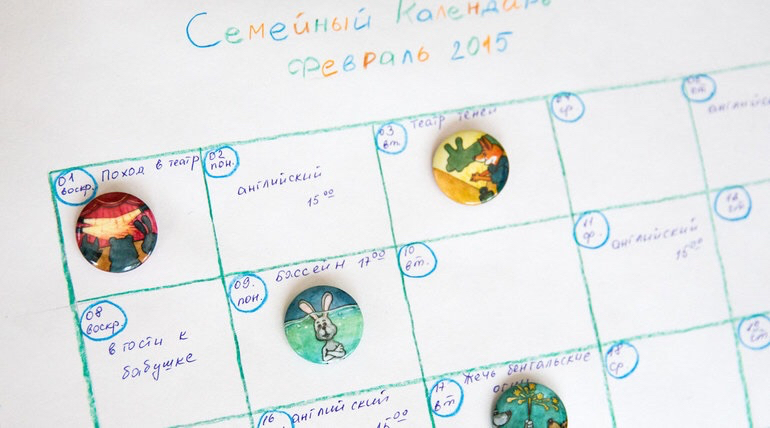 Использовать значки для планирования досуга. Например, приколоть значок "прямо на попе" на ближайшее воскресенье, чтобы запланировать катание с горки. Потом значок отдать в коллекцию ребёнку.