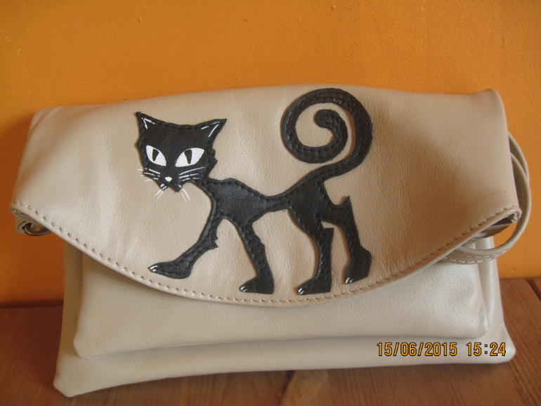 И клатч Багирка. Тут вышло...небольшое недоразумение. В интернете она была бежевая с коричневой багиркой, я подумала, что такая и придёт, а оказывается нужно это было отписаться подробнее о пожеланиях, поэтому они отшили вот такую: