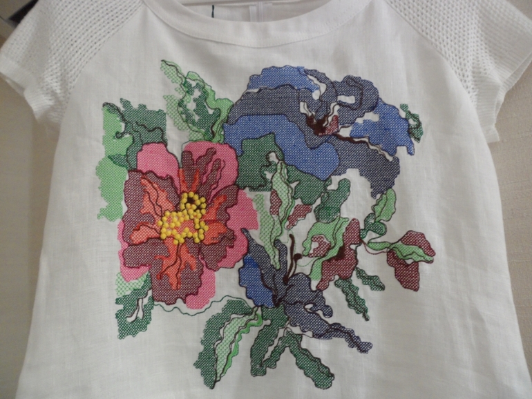 2. Топ дизайнера Николая Морозова. Размер 42. На груди кожаная вставка. Цена 2000.