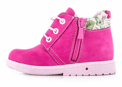 В этих ботинках есть все, что нужно для здорового развития и комфорта малышки. Анатомическая стелька и супинатор обеспечат правильную походку. Каблук Томаса препятствует заваливанию ноги. Укрепленные берцы надежно держат ногу во время подвижных игр. Молния позволит не возиться со шнурками в детском саду. А яркая расцветка и лаконичный цветочный принт сделают девочку звездой на любой прогулке.
