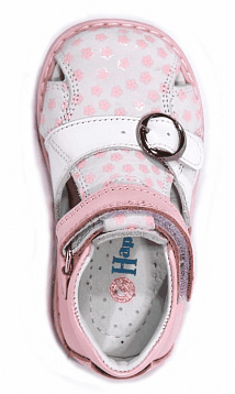 Дети без ума от сандалий с принтом мильфлер! Завышенный задник удобно фиксирует ноги ребенка в правильном для ходьбы положении. Модель снабжена антибактериальной стелькой и супинатором для профилактики плоскостопия. Ребенок будет с удовольствием разглядывать красочные рисунки на своей обуви!