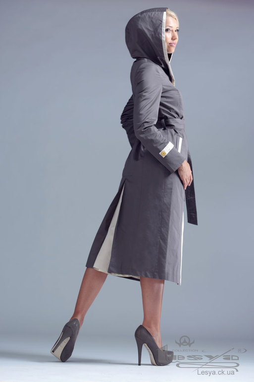 ОПИСАНИЕ: плащ с капюшоном,полуприлегающего силуэта,дл.рукав,карманы прорезные.