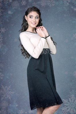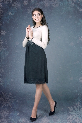 Трикотажное платье, отделка гипюр. Длина -100 см. Мне великовато, подойдет на 44.-1800