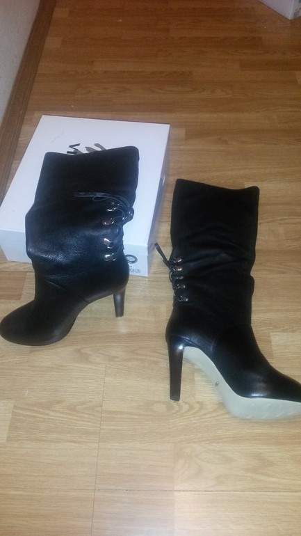 новые сапоги весна-осень V*i*t*a*c*c*i* , размер 40 на ножку примерно 26см ( у меня одна стопа 25,5 а вторая 26,5 в принципе на обоих комфортно )