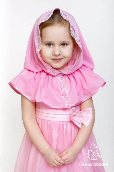 Воздушный, мягкий и струящийся стрейч-шифон, из которого выполнена модель, легким облачком окутывает голову и плечи крохи, создавая ощущение праздника и сказки.