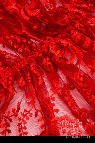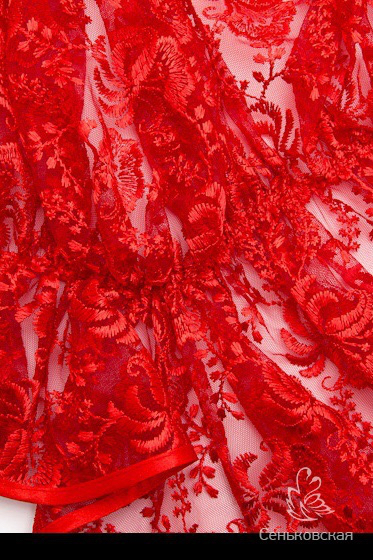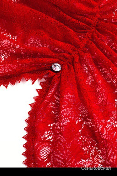 Особенность модели - в удивительно красивой вышивке и великолепной отделке. Насыщенный красный цвет, пышный растительный орнамент на ажурной сетке, а также пуговица Swarovski делают платок нарядным и праздничным.