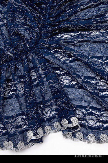 Платок подойдет тем, кто хочет создать стильный и современный образ. Нужное впечатление создается благодаря эффектному сочетанию холодных цветов: темно-синего и серебряного. Платок выполнен из мягкого эластичного материала стрейч-гипюра, что делает изделие легким, тонким и удобным в использовании. Модный темно-синий цвет придает свежесть облику, а благодаря вышивке серебряной нитью платок выглядит дорого, изысканно и торжественно. Контрастное серебристое кружево и пуговица-кристалл Swarovski дополняют нарядный и стильный образ.