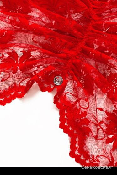 Этот платок для смелой и уверенной в себе женщины. Он словно говорит: "Да, я красива, роскошна, и прекрасно знаю об этом". Уникальность платка заключается в оригинальности художественного решения, основанного на контрасте. Изысканная вышивка со сложным ритмом цветов, веточек, листьев контрастирует с прозрачным фоном, строгая бейка подчеркивает изящество и богатство узора, роскошный красный цвет и пуговица-кристалл Swarovski соседствует с трогательным по своей красоте кружевом.